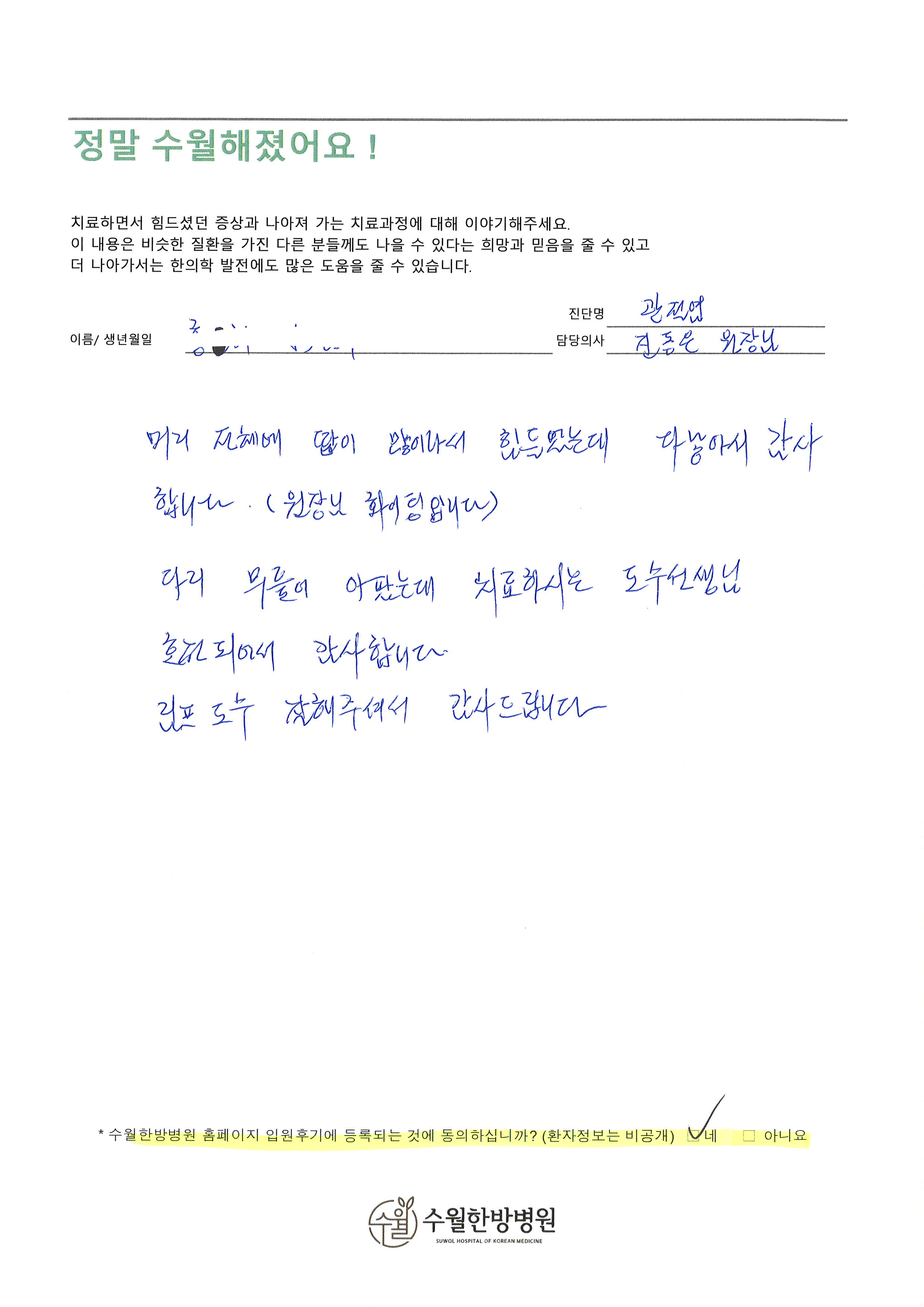수월한의원의 궁금한 점을 지금 해결하세요.